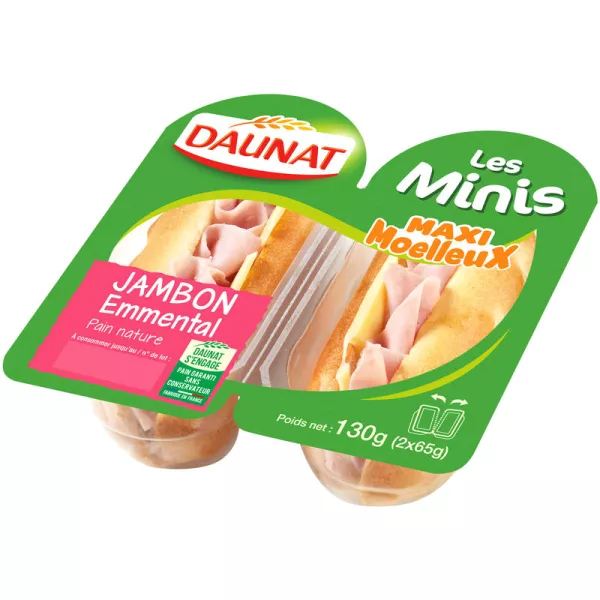 查看品牌Daunat的所有产品卷 53%:小麦粉、水、鸡蛋、糖、酵母(小麦和黑麦粉、水、酵母)、菜籽油、浓缩黄油(包括色素:β-胡萝卜素)、乳化剂:E471 - E481、盐、酵母、牛奶粉末,小麦面筋,增稠剂:塔拉胶,调味剂,抗氧化剂:抗坏血酸。 馅料 47%:选择熟火腿 67%:猪肉火腿、水、盐、葡萄糖和小麦葡萄糖浆、调味剂、稳定剂 E450 - E451、抗氧化剂:异抗坏血酸钠、防腐剂:E250。爱蒙塔尔 16%。低脂蛋黄酱:水、3% 菜籽油、第戎芥末(水、芥菜籽、醋、盐、酸化剂:E330、抗氧化剂:焦亚硫酸钾)、蛋黄、醋、变性淀粉、糖、盐、增稠剂:瓜尔豆胶- 黄原胶,防腐剂:山梨酸钾。