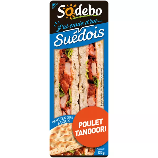 Pan sueco (trigo, centeno, harina de trigo malteada y cebada malteada, agua, azúcar, aceite de colza, levadura de panadería, jarabe de glucosa de trigo, masa madre de centeno, germen de trigo, gluten de trigo, trigo, sal, vinagre de alcohol), carne de pollo, ensalada, aceites vegetales (colza, girasol), agua, yema de huevo, vinagre de alcohol, almidón de maíz, almidón de mandioca, sacarosa, dextrosa de trigo, maltodextrina de trigo y/o maíz, sal, sabores naturales, especias, plantas aromáticas, semillas de mostaza, extractos vegetales. Información en negrita para alérgicos. Este producto puede contener trazas de pescado, soja y leche. Pollo: origen UE.