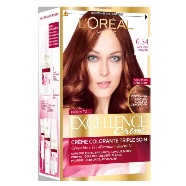 Coloration permanente 6.54 acajou cuivré L'OREAL PARIS EXCELLENCE CREME
