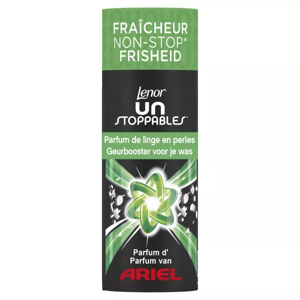 Contenu du produit : Découvrez le parfum de linge en perles Lenor Unstoppables formulé avec une technologie de fraîcheur durable pour apporter à votre linge jusqu'à 12 semaines de fraîcheur non-stop dans l'armoire. Les experts en parfum Lenor recommandent la senteur Unstoppables d'Ariel si vous aimez le parfum de fraîcheur et de propreté durable.