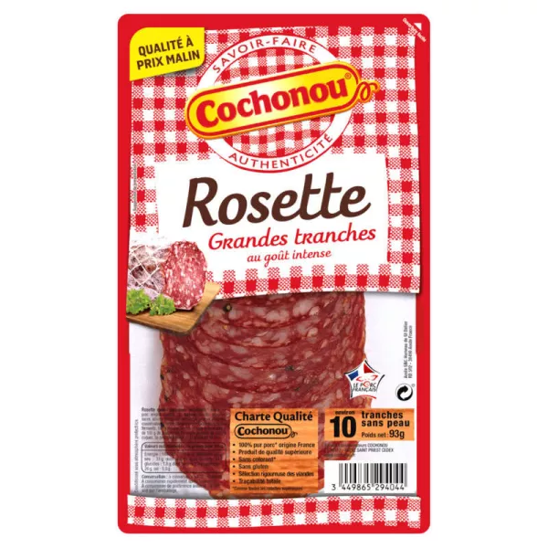 FOURNISSEUR EN Rosette Grandes Tranches au Goût Intense, 93g - COCHONOU EN GROS