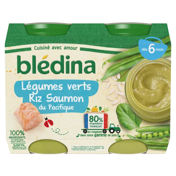Grossiste Petit pot légumes verts riz saumon du Pacifique dès 6 mois 2x20g - BLEDINA