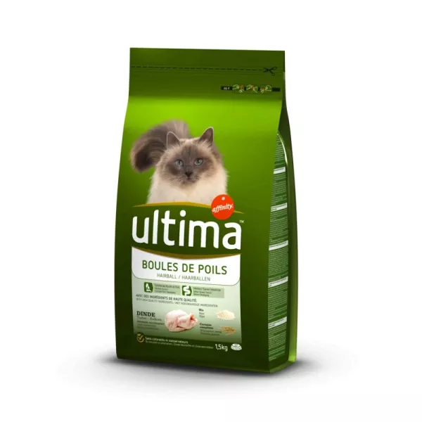 Croquettes pour chat Boules de poils dinde riz 1.5kg - ULTIMA