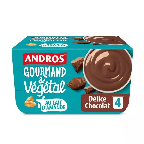 Lait d'AMANDE 75% (eau, AMANDE 2%), sucre, chocolat noir 4,5% (pâte de cacao, sucre, beurre de cacao, émulsifiant: lécithine, arôme naturel de vanille), amidon, poudre de cacao maigre, poudre de cacao, fibres d'acacia, épaississant: farine de graines de caroube, sel. Peut contenir du SOJA et d'AUTRES FRUITS À COQUE.