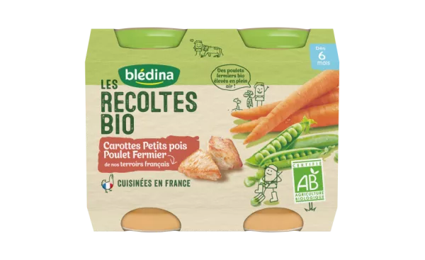 ПОСТАВЩИК ОПТОМ: Маленькие ОРГАНИЧЕСКИЕ горшочки с морковью/горохом/курицей с 6 месяцев 2х200г - BLEDINA