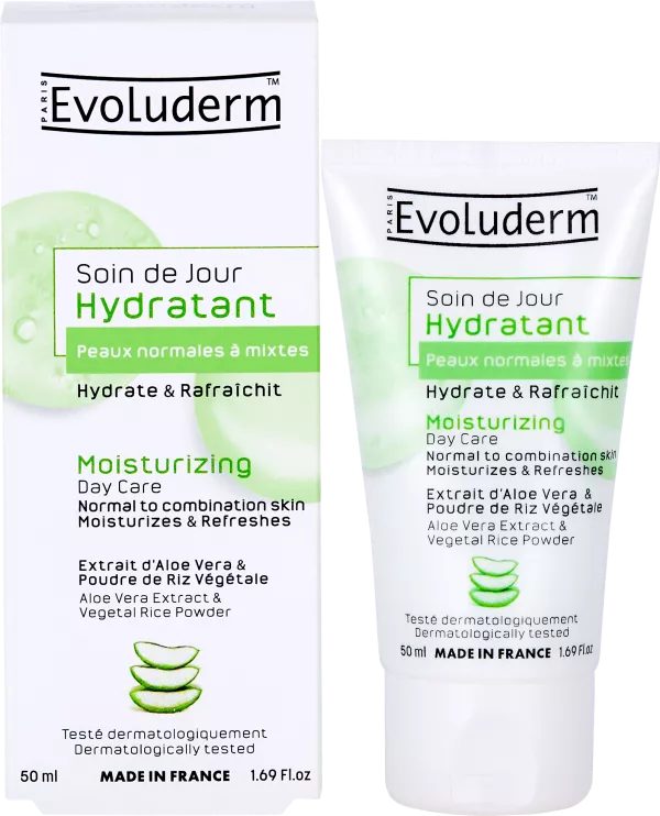 Mtoa huduma katika Utunzaji wa siku ya hydrating ngozi za kawaida kwenye 50ml iliyochanganywa - Evoluderm kwa jumla