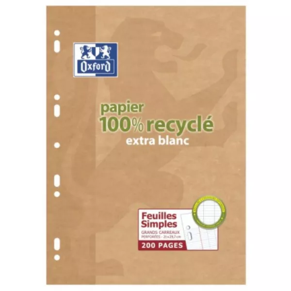Feuilles Simples A4 100% Recyclé Grands Carreaux X200 - OXFORD